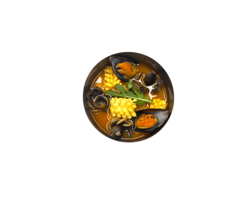 Кальмар квітка, мідії, восьминіжки бебі, бульйон