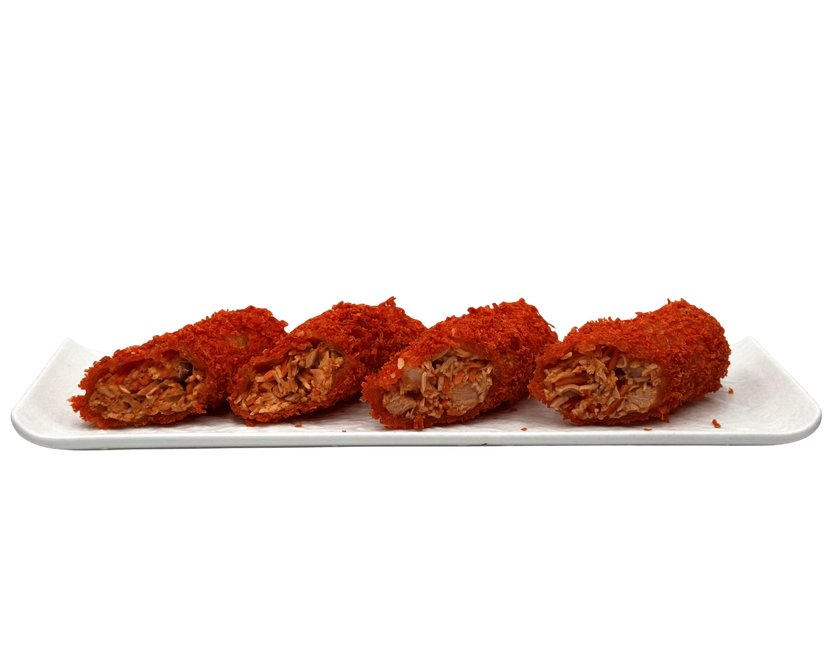 Смажений у хрусткому Панко спрінг рол з сніговим крабом, тигровими креветками, огірком, азійськими гострими соусами
