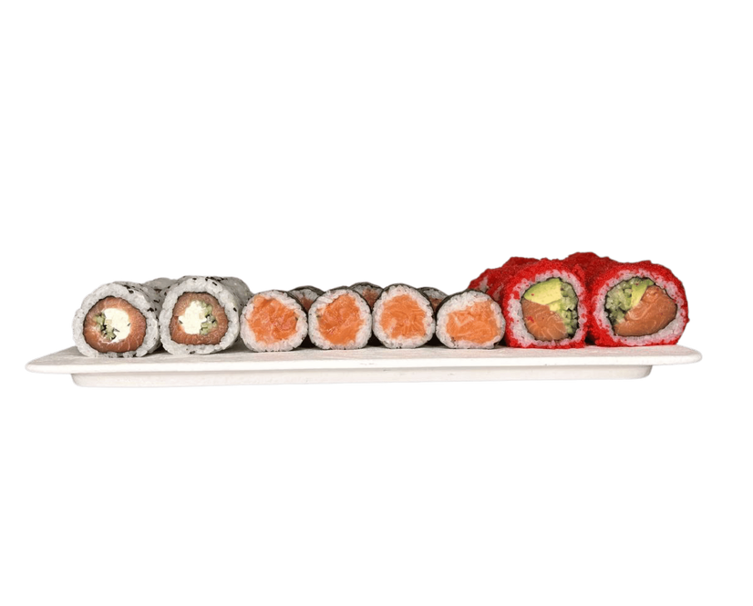 Каліфорнія з лососем (авокадо, огірок, лосось MAXI порція, ікра)