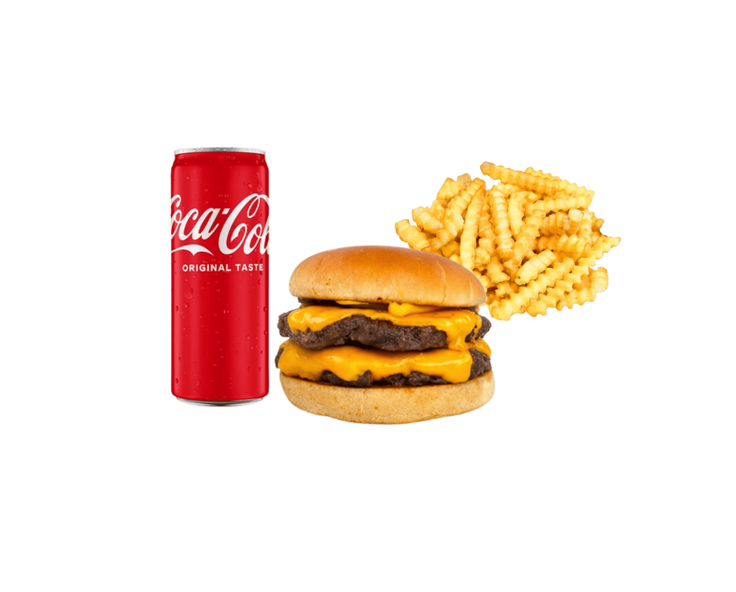 Твій улюблений Дабл чізбургер + картопля фрі хвиляста + кока кола + кетчуп