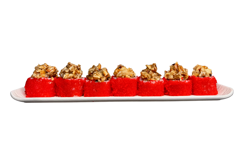 Рис, смажений вугор, крем сир, медово-гірчичний соус, омлет тамаго, хрусткий огірочок, ікра