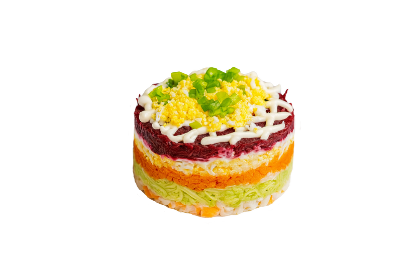 Авокадо, буряк, морква, яйце, майонез, цибуля свіжа, рибка на вибір (лосось слабозасолений чи масляна копчена)