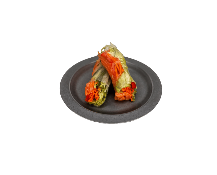 Спрінг рол в корейському стилі, рибка на вибір (слабосолений лосось чи копчена масляна) морква корейська, огірок, айсберг, перець