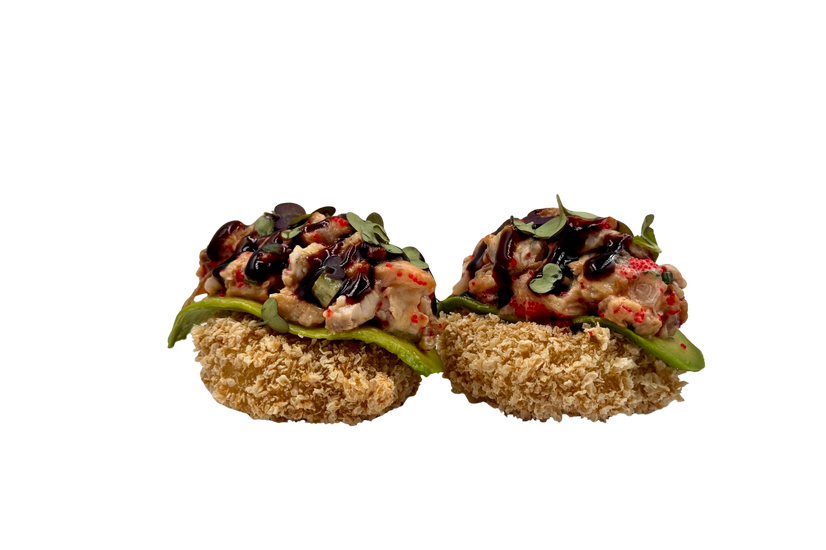 Рис, крем сир, вугор смажений, хрусткий кляр, рис, авокадо, соус, ікра