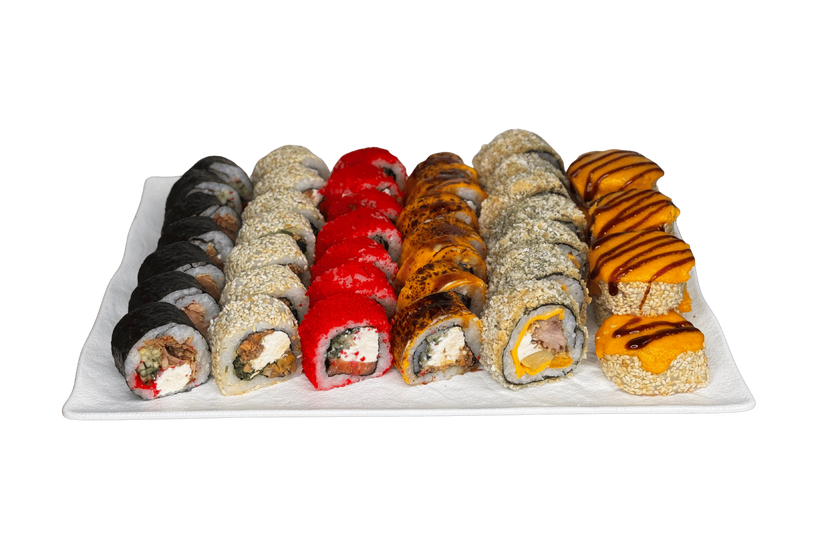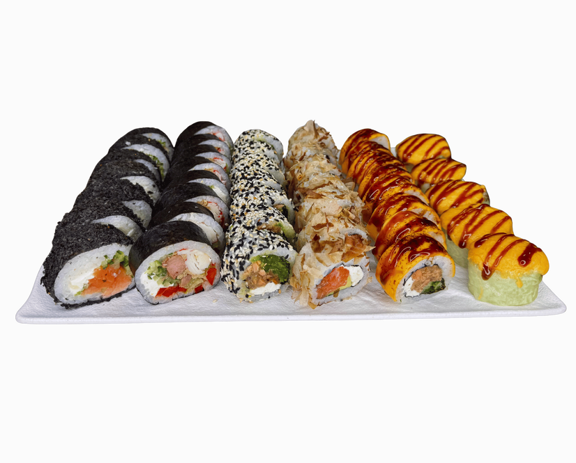 У вартість входять соусники з імбирем, васабі та соєвим соусом на 4 персони