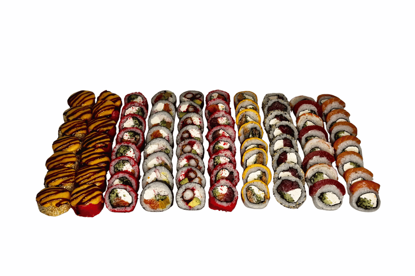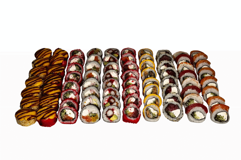В сеті 80 неймовірно смачних шматочків, збалансовано підібрані різні смаки рибки, гастрономічну насолоду від смаку гарантуємо :)