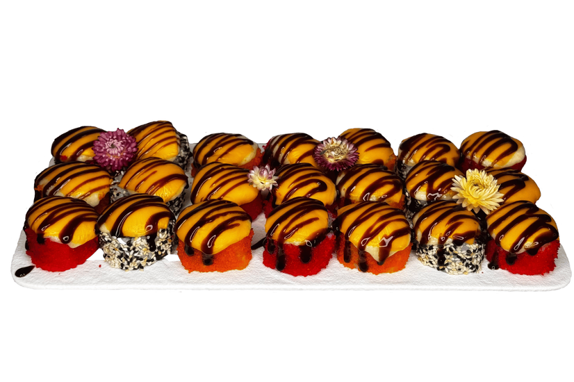 Запечений з тигровими креветками MAXI в ікрі (поливається солодкуватим соусом Унагі)
