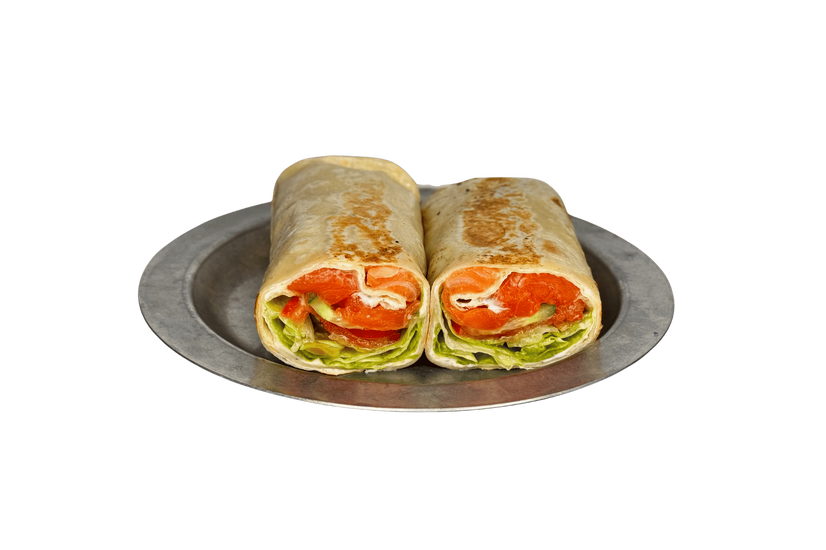 Тортилья, лосось слабосолений MAXI порція, айсберг, томат, огірок, соуси
