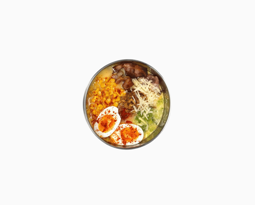 Наш класичний рамен з додаванням чедеру, пармезану, кукурудзи, бекону та кранч цибулі